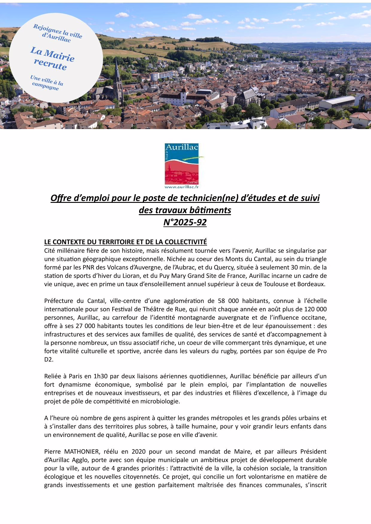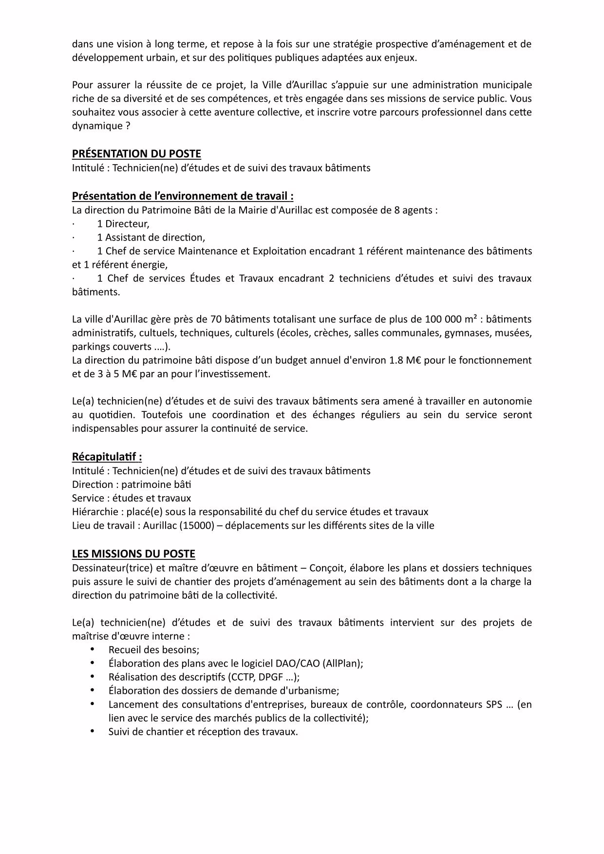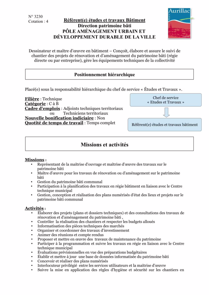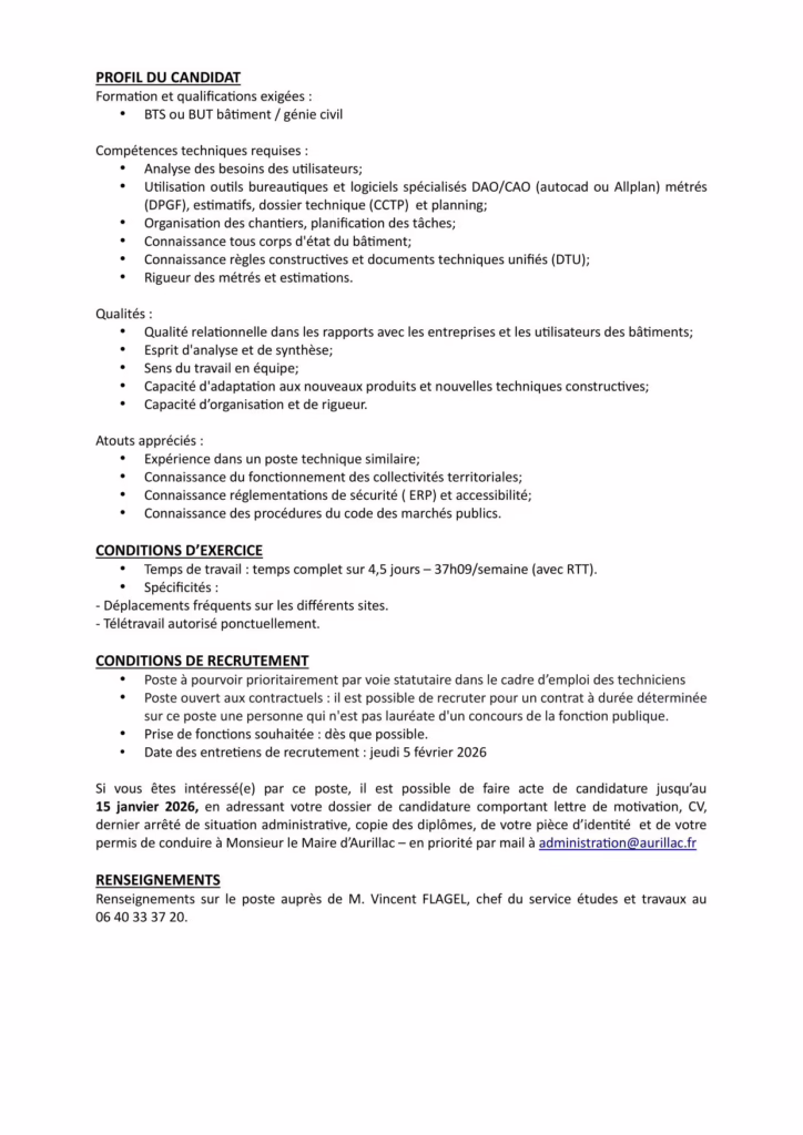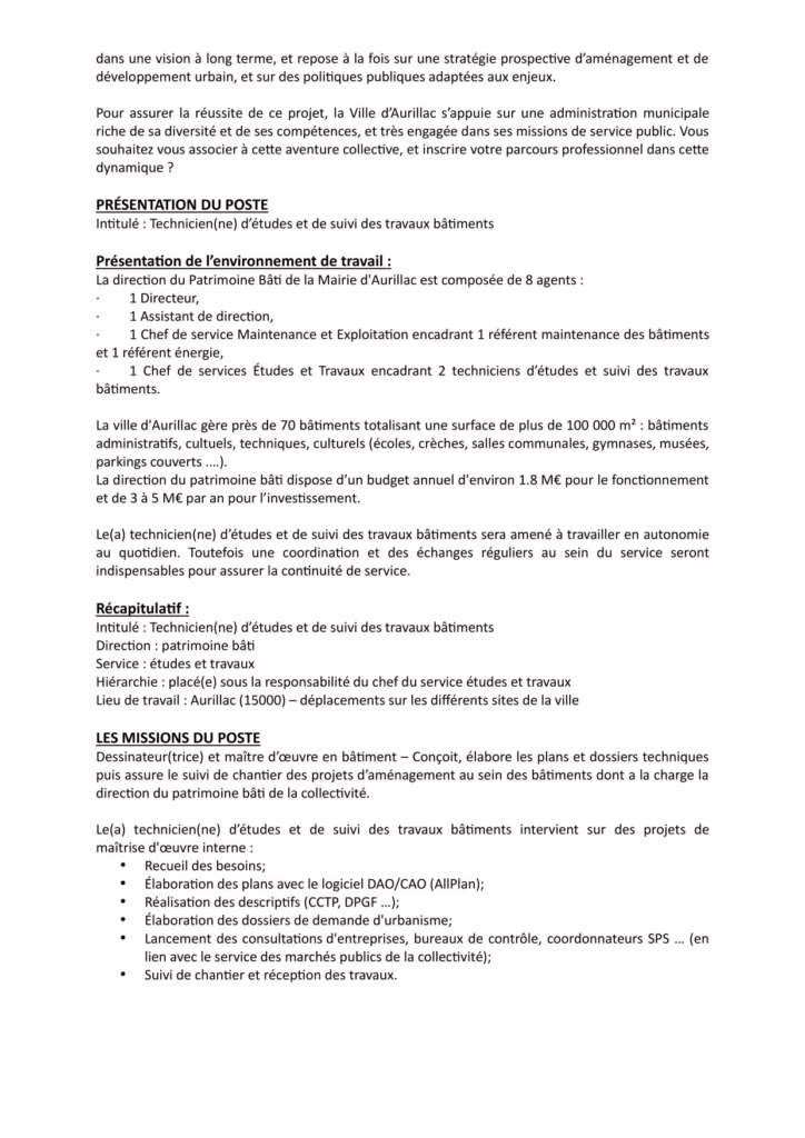 Offre d’emploi pour le poste de technicien(ne) d’études et de suivi des travaux bâtiment