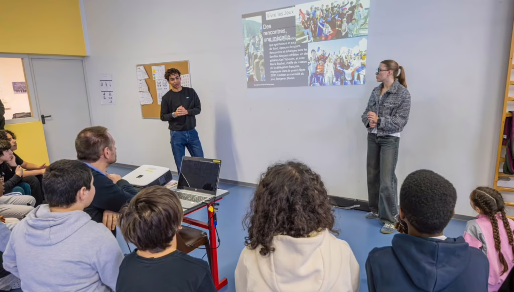 Lors de la Semaine Olympique et Paralympique (SOP) organisée par l’équipe EPS du collège Joliot Curie, nos deux « ambassadeurs 2030 » du lycée François ARAGO, Zélie BAUDON et Noham TOURKI-LESTRADE, ont pu témoigner et partager leur expérience unique lors des Jeux Paralympiques de Milan-Cortina. Un échange inspirant pour les jeunes autour de leur engagement et de leur vécu au cœur de cet événement international.